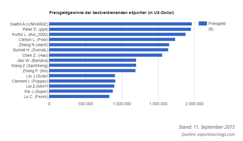 Preisgelder von den besten E-Sportler